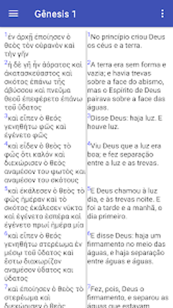 Bíblia em gregoPortugesus com to aplikacja edukacyjna dostępna na platformie Android, która oferuje unikalne połączenie tekstu greckiego i portugalskiego. Użytkownicy mogą korzystać z równoległego wyświetlania obu wersji Biblii, co ułatwia naukę języka oraz zrozumienie kontekstu tekstów religijnych. Dodatkowo, aplikacja zawiera słownik oraz konkordancję, co czyni ją przydatnym narzędziem dla studentów teologii oraz osób interesujących się językiem greckim.